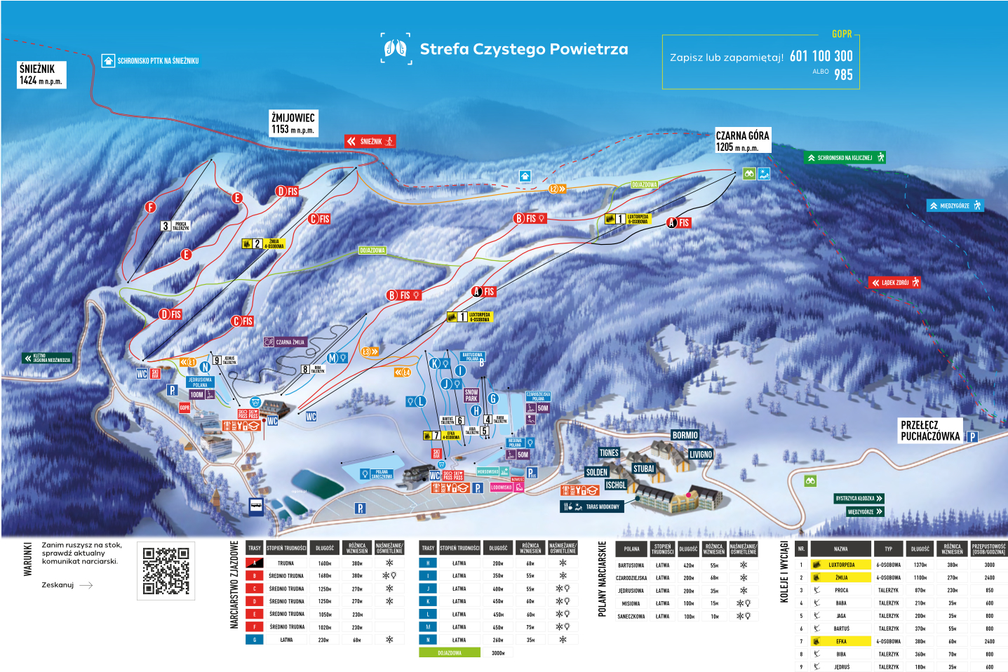 Trudno uwierzyć, ale dla narciarzy i snowboardzistów dostępnych jest tu 20 tras o różnym poziomie trudności. Mamy pełen przekrój od niebieskich przez czerwone po czarne. Świetną opcją jest też snowpark, który w tym roku będzie przygotowany na nowo. Warto wspomnieć, że trasy ratrakowane są dwa razy dziennie, posiadają homologacje FIS i są wyposażone w nowoczesny system naśnieżania, a dzięki własnemu oświetleniu umożliwiają nocne jazdy. W resorcie mamy siedem wyciągów, trzy koleje linowe oraz cztery taśmy. Wśród nich „Luxtorpeda”, która dociera na szczyt Czarnej Góry (1150 m n.p.m.) w 3 minuty!